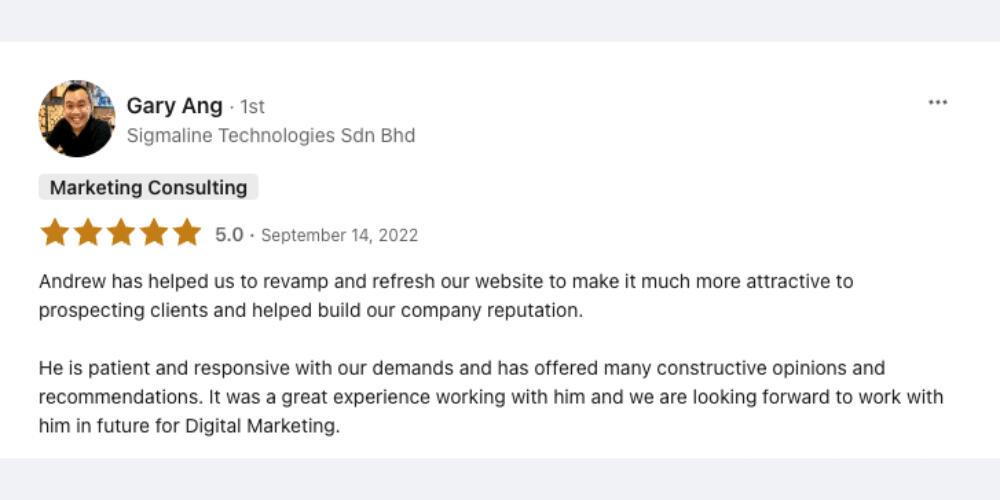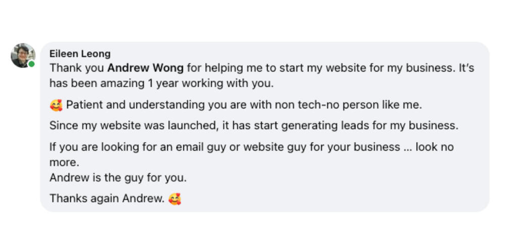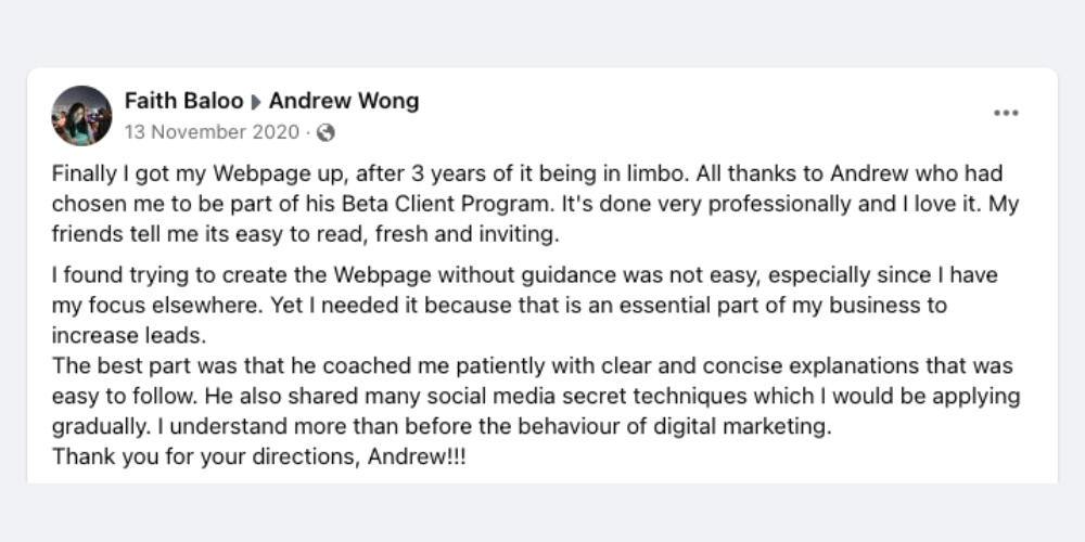 If you had purchased the Build You Own Carrd Website Online course and wish to upgrade to Build For You Carrd Website (Done-For-You) plan, you will be entitled to a 10% discount off the plan’s fee of MYR1,999.